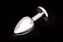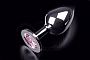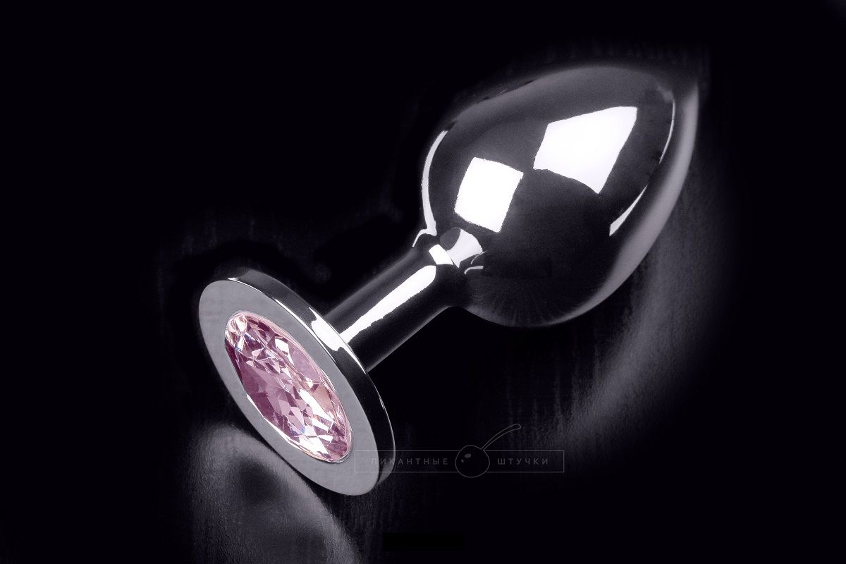 Секс шоп » Анальные игрушки » Анальная ювелирка » Большая серебристая анальная пробка с круглым кончиком и розовым кристаллом - 9 см.