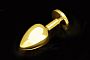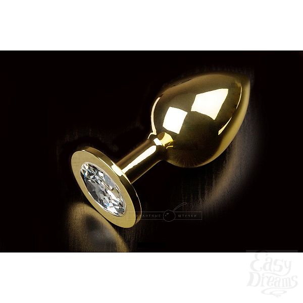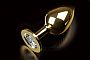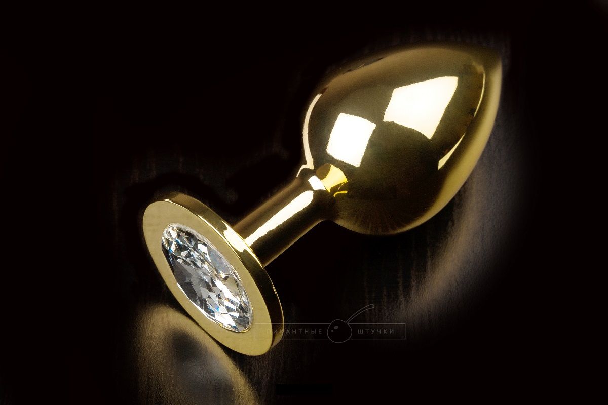 Секс шоп » Анальные игрушки » Анальная ювелирка » Большая золотая анальная пробка с закругленным кончиком и прозрачным кристаллом - 9 см.