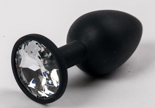 Секс шоп » Анальные игрушки » Анальная ювелирка » Черная силиконовая анальная пробка с прозрачным стразом - 7,1 см.