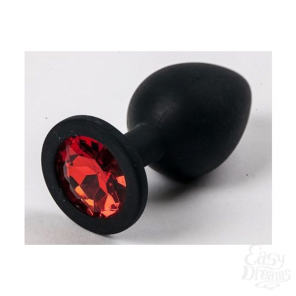 Секс шоп » Анальные игрушки » Анальная ювелирка » Черная силиконовая анальная пробка с красным кристаллом - 9,5 см.