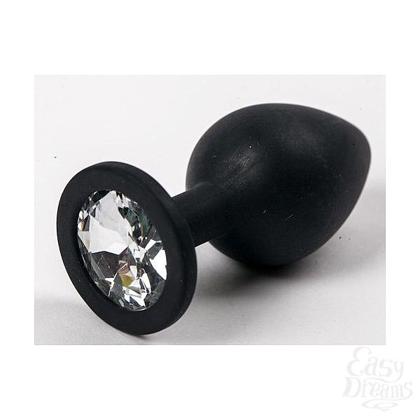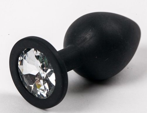 Секс шоп » Анальные игрушки » Анальная ювелирка » Черная силиконовая анальная пробка с прозрачным стразом - 8,2 см.
