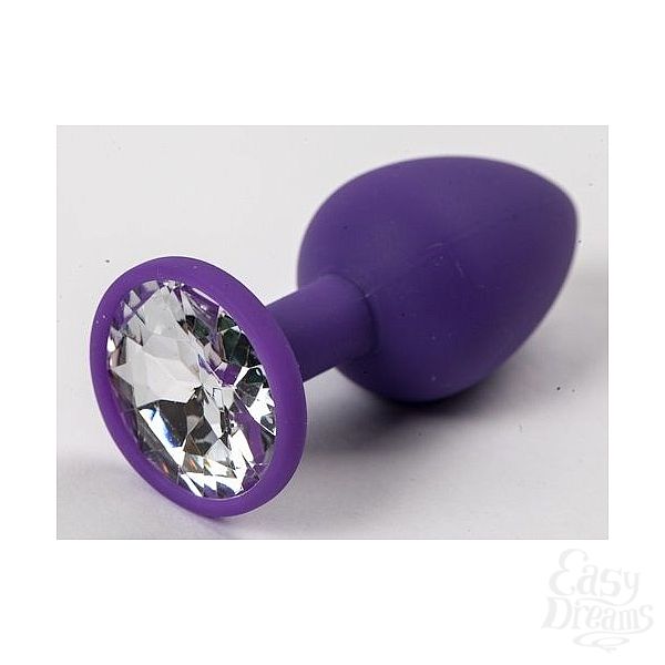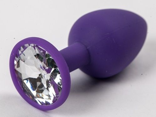 Секс шоп » Анальные игрушки » Анальная ювелирка » Фиолетовая силиконовая анальная пробка с прозрачным стразом - 7,1 см.