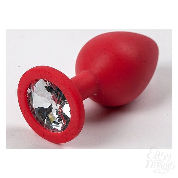 Секс шоп » Анальные игрушки » Анальная ювелирка » Красная силиконовая анальная пробка с прозрачным стразом - 8,2 см.
