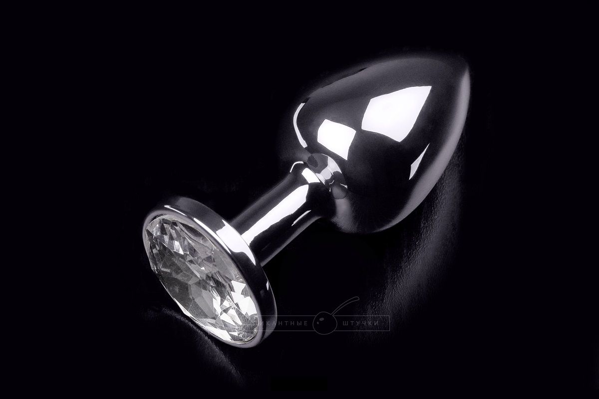 Секс шоп » Анальные игрушки » Анальная ювелирка » Маленькая серебристая анальная пробка с круглым кончиком и прозрачным кристаллом - 7 см.