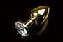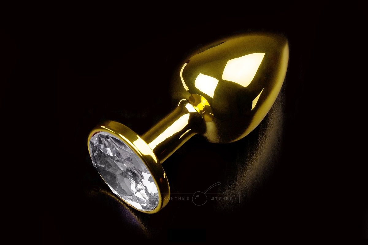 Секс шоп » Анальные игрушки » Анальная ювелирка » Маленькая золотистая анальная пробка с круглым кончиком и прозрачным кристаллом - 7 см.