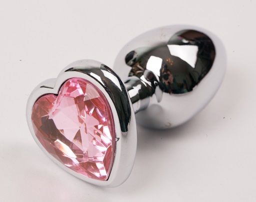 Секс шоп » Анальные игрушки » Анальная ювелирка » Металлическая анальная пробочка со стразом в виде розового сердечка - 7,5 см.