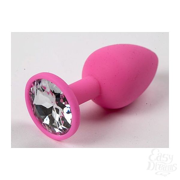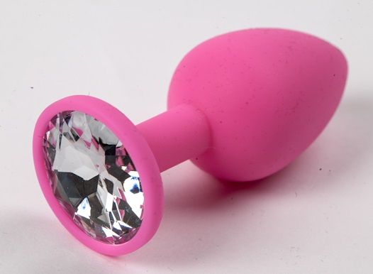 Секс шоп » Анальные игрушки » Анальная ювелирка » Розовая силиконовая анальная пробка с прозрачным стразом - 7,1 см.