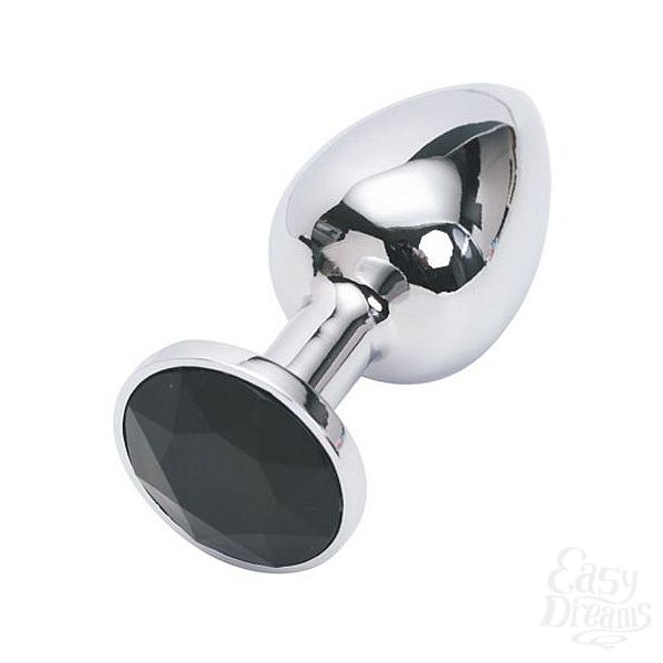 Секс шоп » Анальные игрушки » Анальная ювелирка » Серебристая анальная пробка с черным кристаллом - 7,6 см.