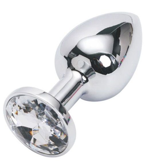 Секс шоп » Анальные игрушки » Анальная ювелирка » Серебристая анальная пробка с прозрачным кристаллом - 7,6 см.