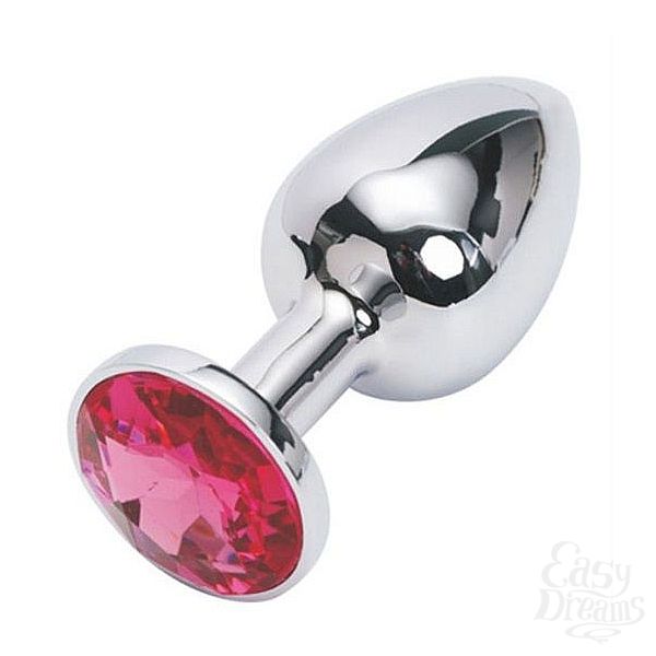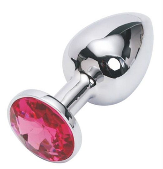 Секс шоп » Анальные игрушки » Анальная ювелирка » Серебряная металлическая анальная пробка с красным стразиком - 7,6 см.