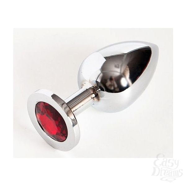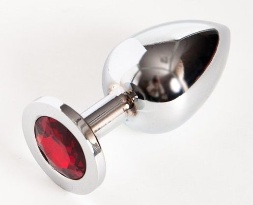 Секс шоп » Анальные игрушки » Анальная ювелирка » Серебряная металлическая анальная пробка среднего размера с красным стразиком - 8,2 см.