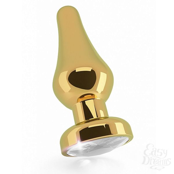 Секс шоп » Анальные игрушки » Анальная ювелирка » Золотистая анальная пробка-конус с прозрачным кристаллом - 13,5 см.