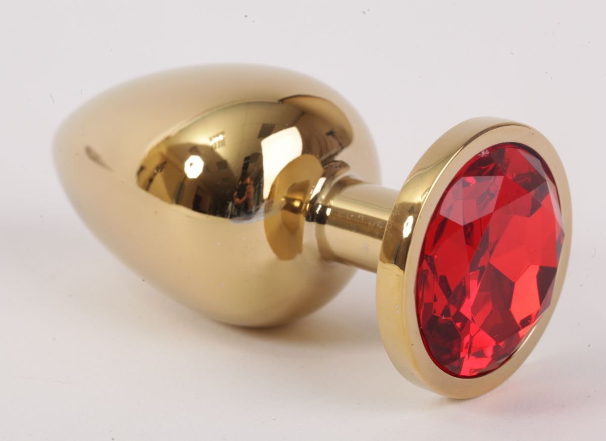 Секс шоп » Анальные игрушки » Анальная ювелирка » Золотистая анальная пробка с красным кристаллом - 8,2 см.