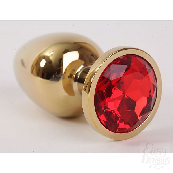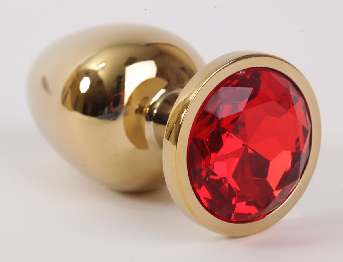 Секс шоп » Анальные игрушки » Анальная ювелирка » Золотистая анальная пробка с красным кристаллом - 9,5 см.