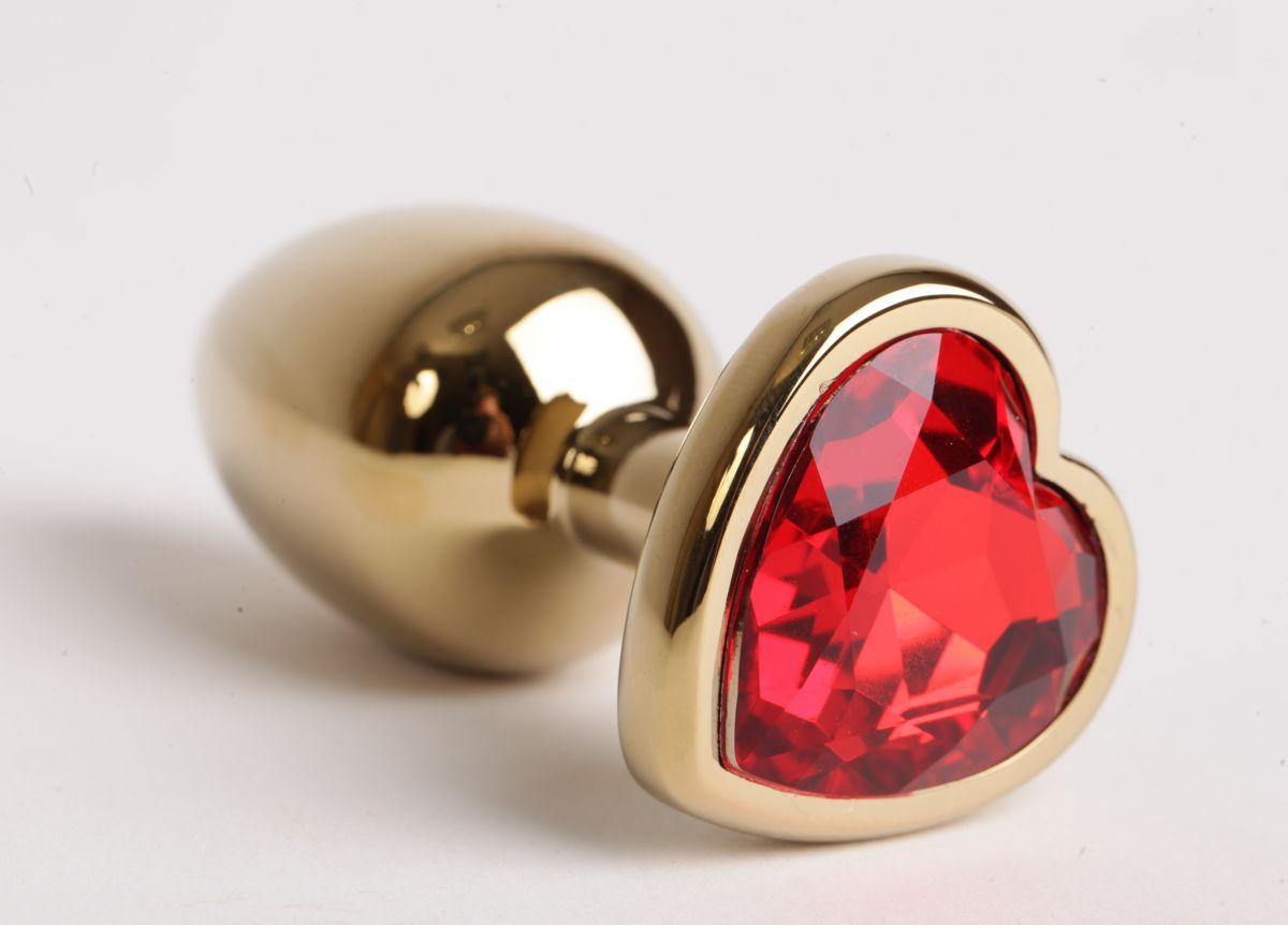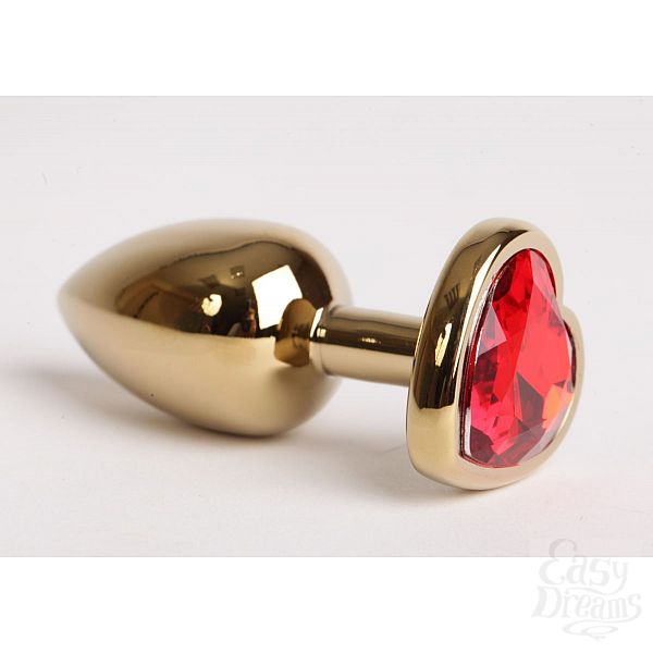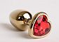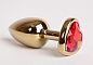 Секс шоп » Анальные игрушки » Анальная ювелирка » Золотистая анальная пробка с красным стразиком-сердечком - 7,5 см.