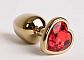Секс шоп » Анальные игрушки » Анальная ювелирка » Золотистая анальная пробка с кристаллом-сердечком, 8 см., Красный