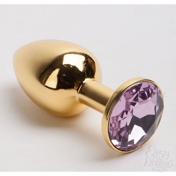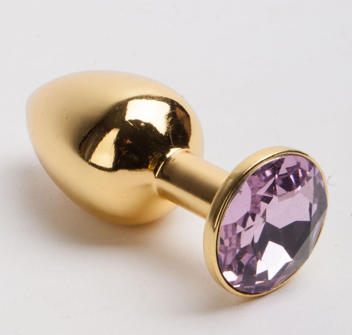 Секс шоп » Анальные игрушки » Анальная ювелирка » Золотистая металлическая анальная пробка с розовым стразом - 7,6 см.