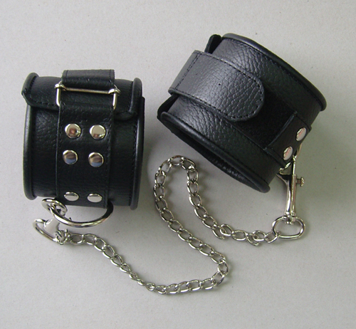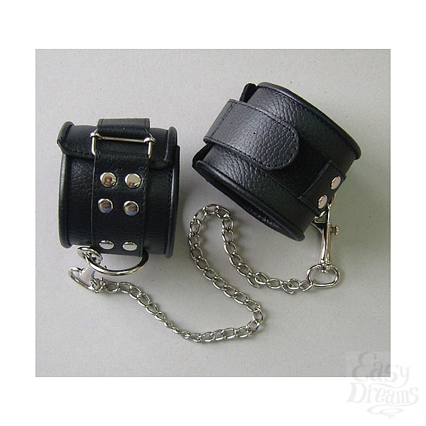 Секс шоп » БДСМ / Фетиш » Наручники / Фиксация » Оковы, поножи » Оковы кожаные черные на липучках, соединенные цепочкой длиной 35см 3073-1