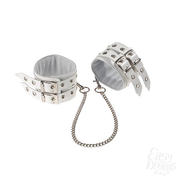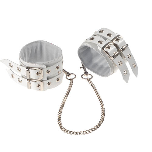 Секс шоп » БДСМ / Фетиш » Наручники / Фиксация » Наручники » Белые кожаные оковы, соединенные цепочкой