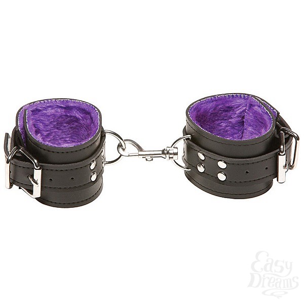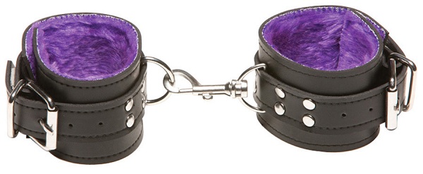 Секс шоп » БДСМ / Фетиш » Наручники / Фиксация » Наручники » Чёрные кожаные наручники X-Play с фиолетовым мехом внутри