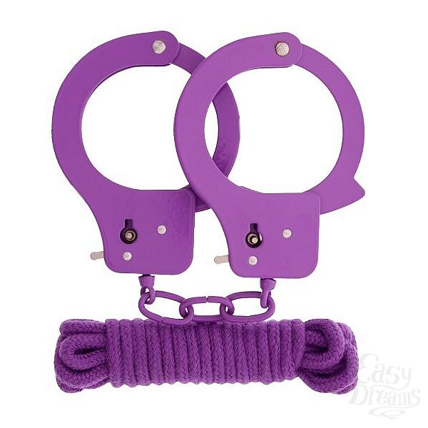Секс шоп » БДСМ / Фетиш » Наручники / Фиксация » Наручники » Фиолетовые наручники из листового металла в комплекте с веревкой BONDX METAL CUFFS LOVE ROPE SET
