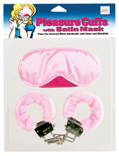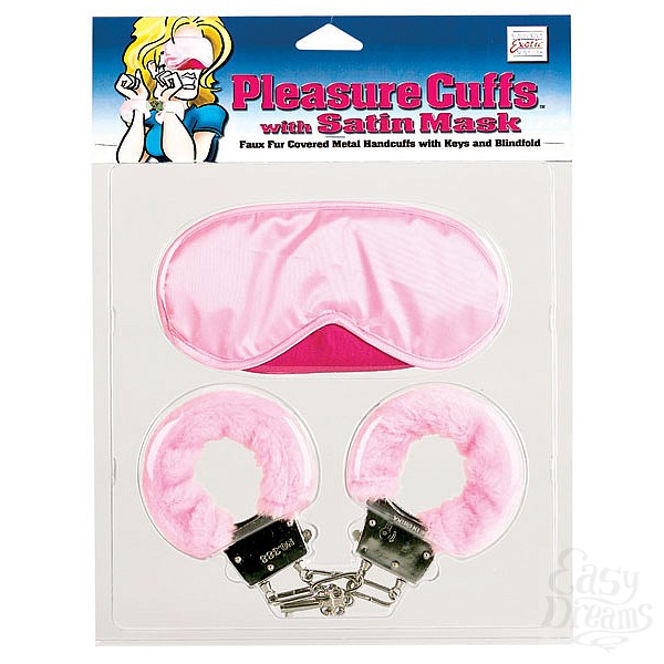 Секс шоп » БДСМ / Фетиш » Наручники / Фиксация » Наручники » Комплект - розовая маска на глаза, наручники обшитые, 2 ключа.