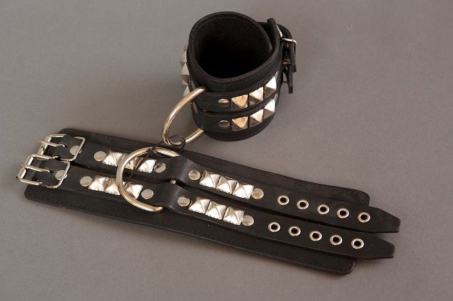 Секс шоп » БДСМ / Фетиш » Наручники / Фиксация » Наручники » Широкие чёрные наручники с квадропуклями