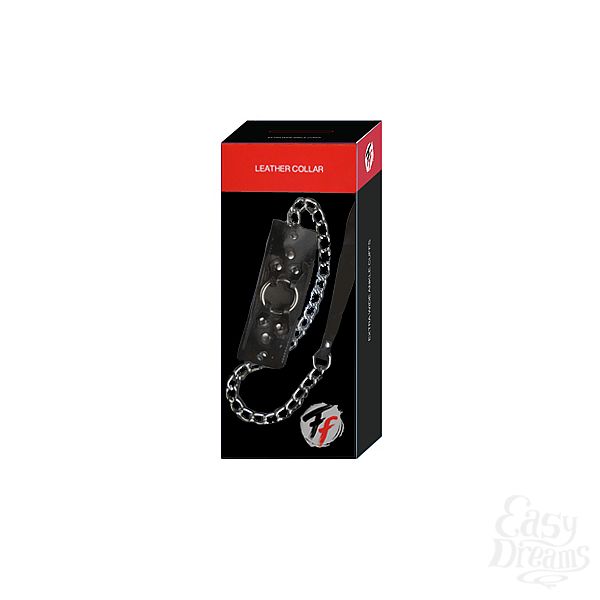 Секс шоп » БДСМ / Фетиш » Ошейники, поводки » Чёрный кожаный ошейник Leather Collar с металлической цепью