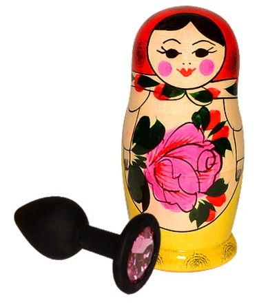 Секс шоп » Анальные игрушки » Анальные пробки (Plug) » Чёрная силиконовая пробка со стразиком в упаковке-матрёшке