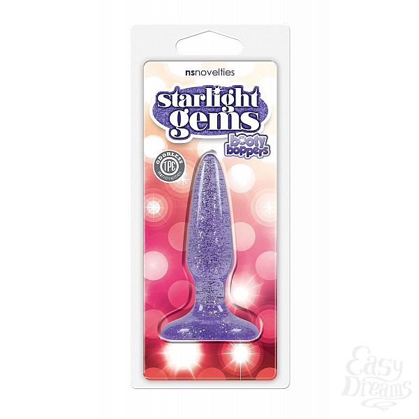 Секс шоп » Анальные игрушки » Анальные пробки (Plug) » Фиолетовая анальная пробка с блёстками Booty Boppers Mini - 8,1 см.