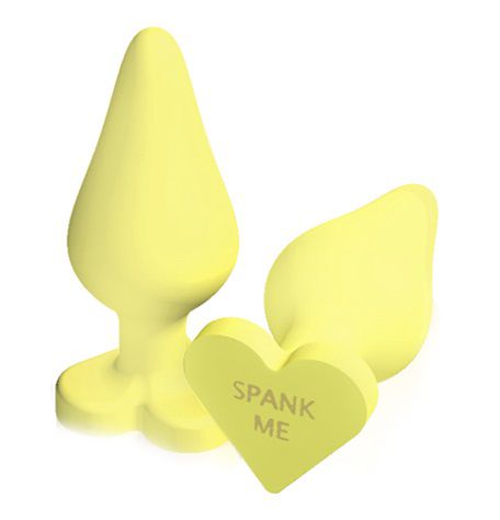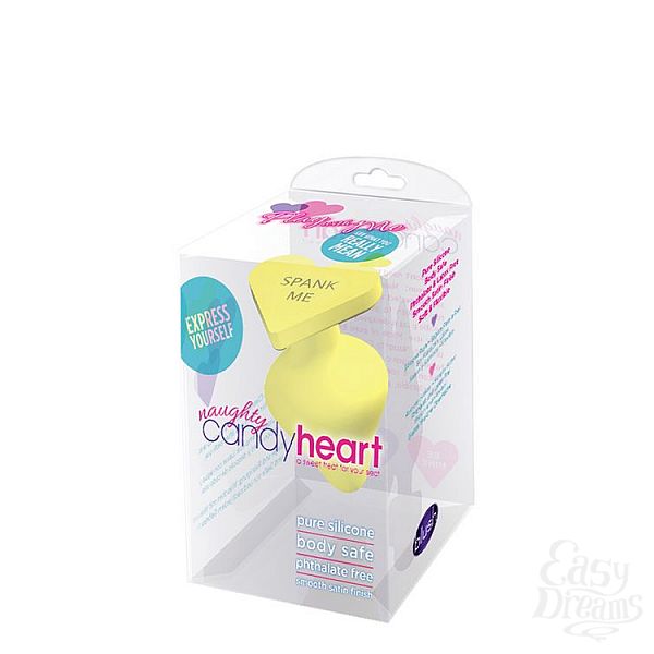 Секс шоп » Анальные игрушки » Анальные пробки (Plug) » Жёлтая анальная пробка с сердечком в основании NAUGHTY CANDY HEART SPANK ME - 8,8 см.
