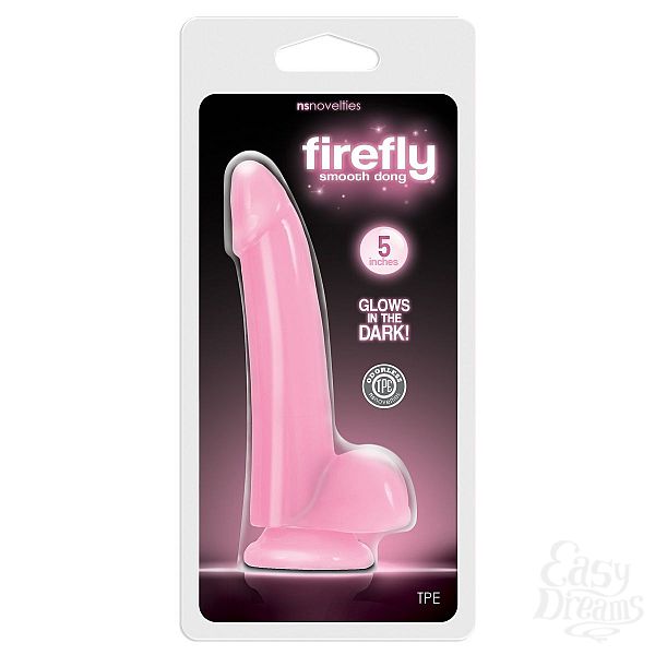 Секс шоп » Фаллоимитаторы » С мошонкой » Розовый фаллоимитатор на присоске Firefly Smooth Glowing Dong 5 Pink - 14,5 см.