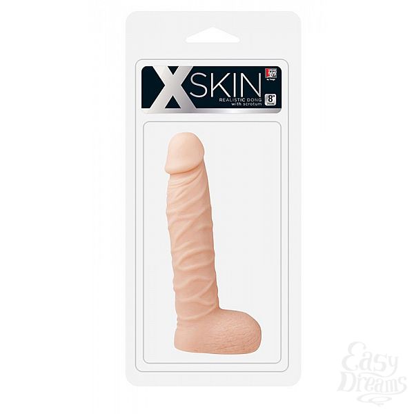 Секс шоп » Фаллоимитаторы » С мошонкой » Телесный фаллоимитатор с мошонкой XSKIN 8 PVC DONG - 20,3 см.