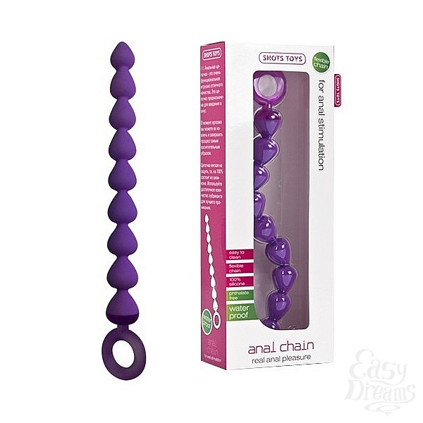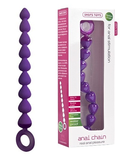 Розовая анальная цепочка с кольцом-ограничителем - 23 см.