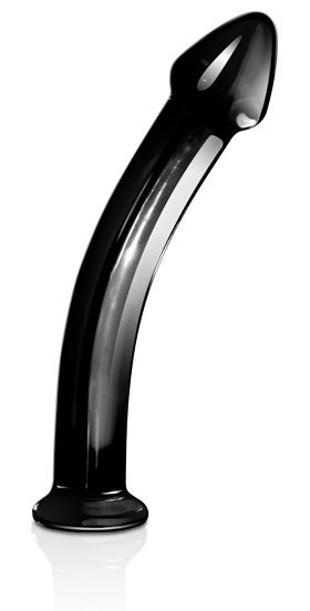 Секс шоп » Фаллоимитаторы » Стеклянные, керамические » Чёрный изогнутый фаллоимитатор из стекла - 19 см.
