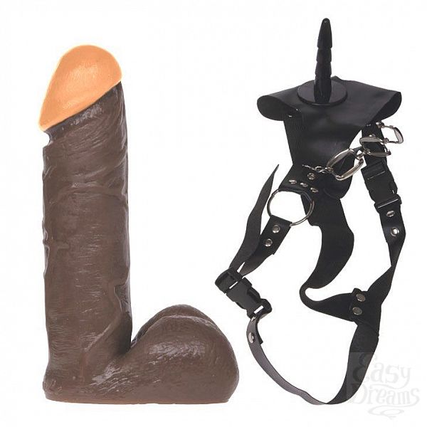 Секс шоп » Страпон » Комплекты с трусиками » Женский страпон с оранжево-коричневой реалистичной насадкой - 17,5 см.