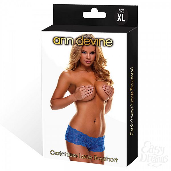 Кружевные трусики-шортики с разрезом в области бикини.Комфортная заниженная посадка по фигуре придаст Вам кокетства и сексуальности.Легкие и эластичные трусики-шортики выполнены в синем цвете.Размер XL.