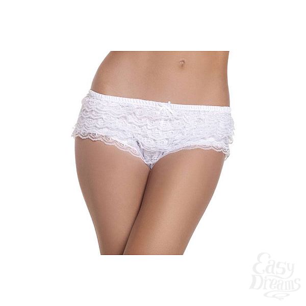 Интересные кружевные трусики-шортики, декорированные игривыми оборками. Украсят любую попку.