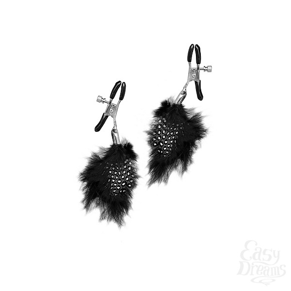 Секс шоп » БДСМ / Фетиш » Зажимы » Зажимы на соски FEATHER NIPPLE CLAMPS с украшением из меха черные